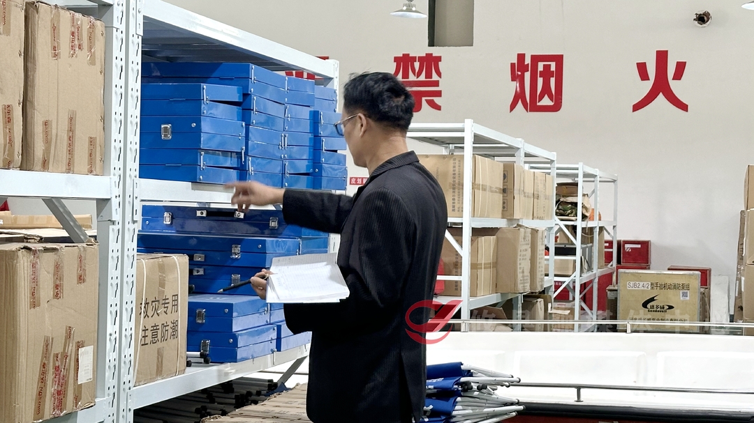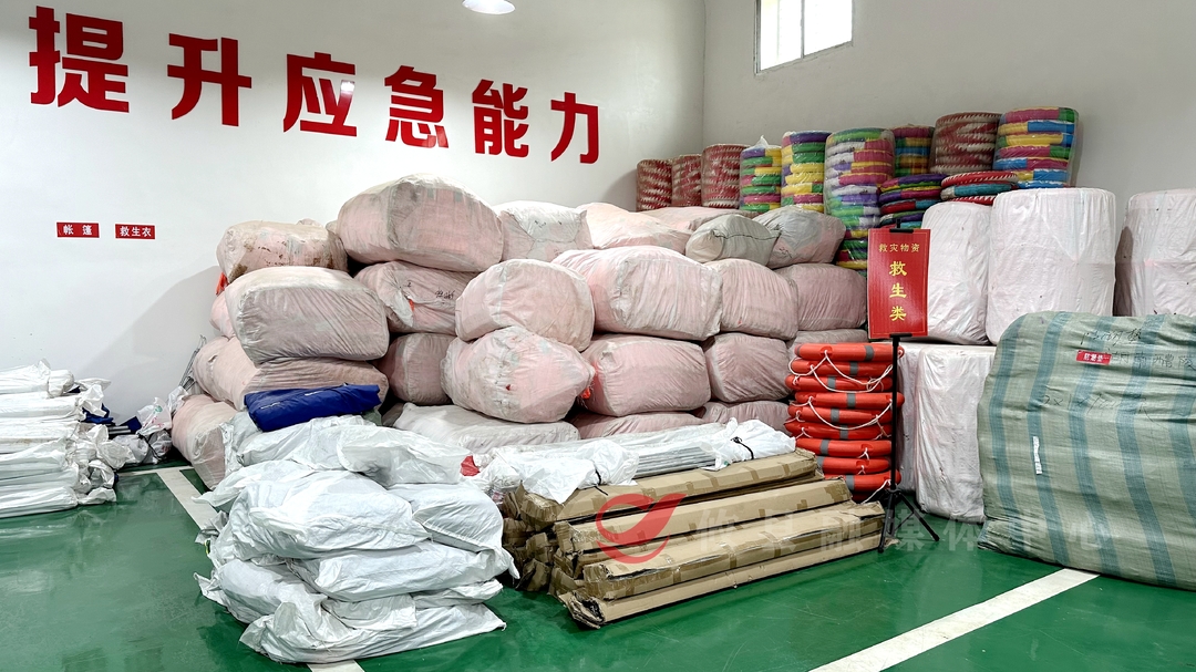 在县救灾物资储存仓库,记者看到各类防汛物资准备充足,皮划艇、编织袋、救生衣、救生圈,雨衣等抢险物资摆放有序,各型号高压水泵、潜水泵、移动发电站等大型救援设备一应俱全,管理人员正在对库存物资进行盘点检查,并对部分防汛装备进行维护、保养,做到物资、管理、人员三到位。