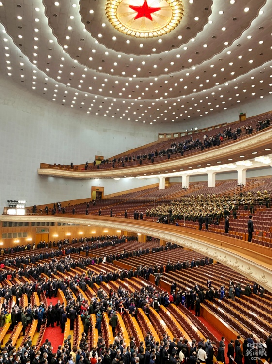 △开幕会结束后,委员们离开会场。(总台央视记者程铖拍摄)