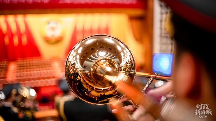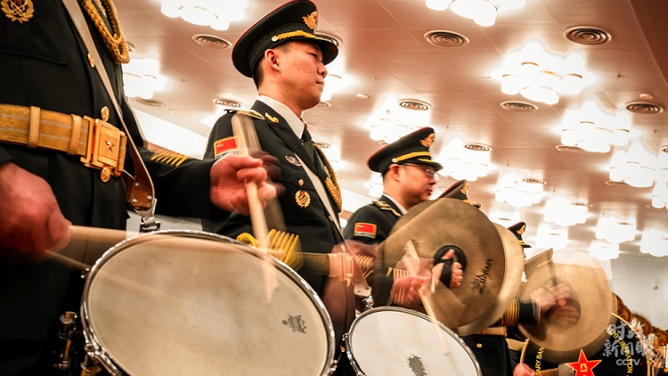 △开幕会上,军乐团演奏国歌。(总台央视记者王威拍摄)