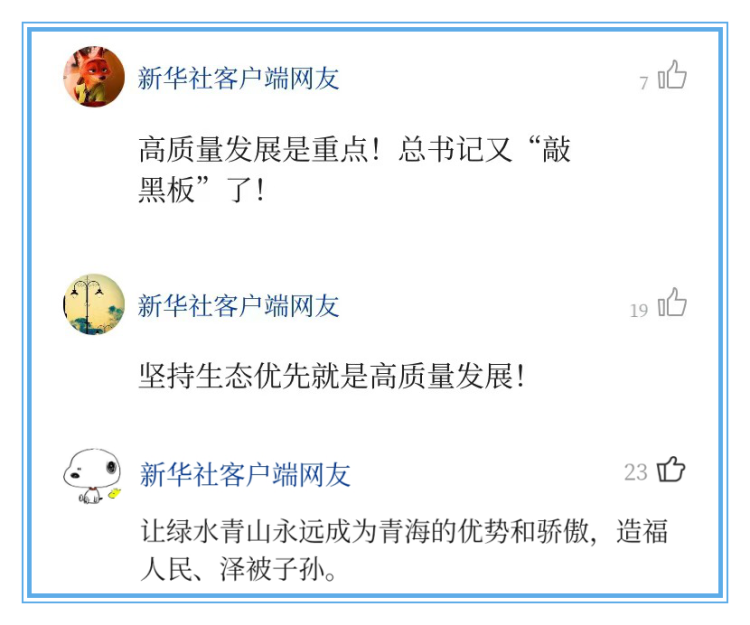 以“绿水青山就是金山银山”引领绿色发展,以高品质生活为落脚点推动高质量发展。习近平总书记的谆谆教诲,代表了广大网友的心声。(来源:新华社)