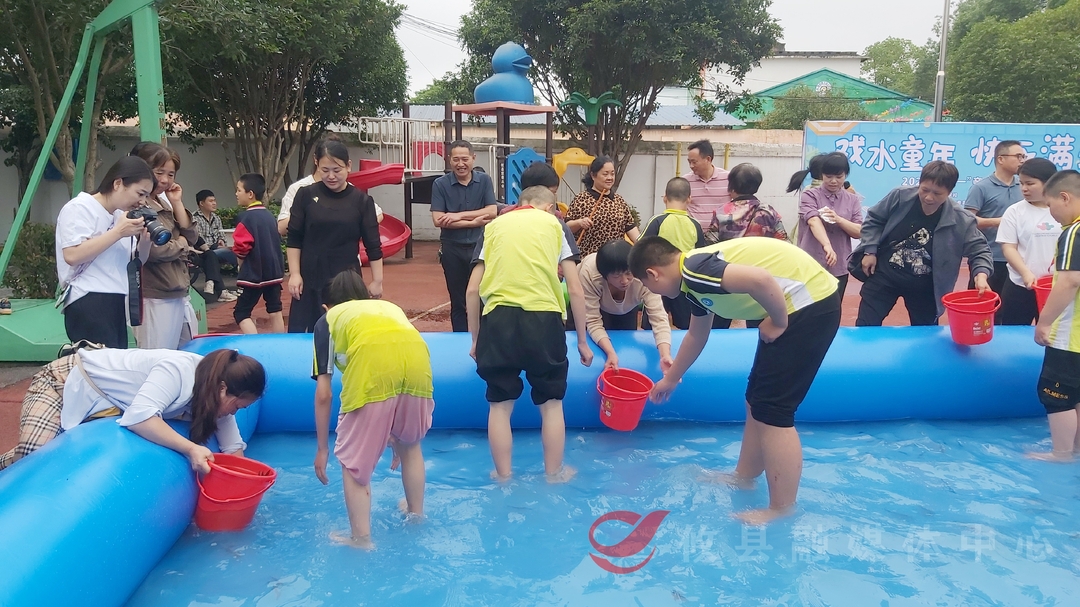为了让特殊学校的孩子们过上一个快乐的“六一”儿童节,5月31日上午,部分爱心企业、社会爱心人士以及家长共同为县特校的孩子们打造了一座属于自己的“水上乐园”。活动现场,在爱心人士的带领和志愿者的协助下,家长和孩子们一起玩水,在“水桶运水”、“竹筒传水”闯关项目中奋力拼搏,陪伴孩子们度过一段难忘的美好时光。在随后的趣味抓鱼比赛中,大家使出浑身解数,“围、追、堵、截”,徒手抓鱼,与鱼“斗智斗勇”,现场加油声、叫好声此起彼伏,整个校园欢声笑语不断。