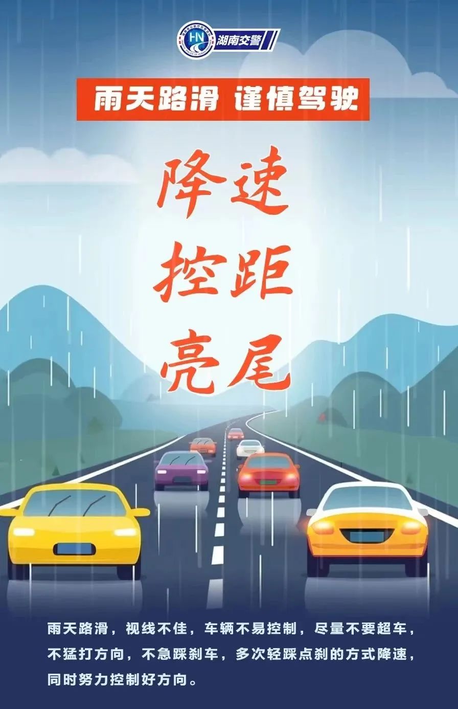 雨天路面湿滑,驾车务必