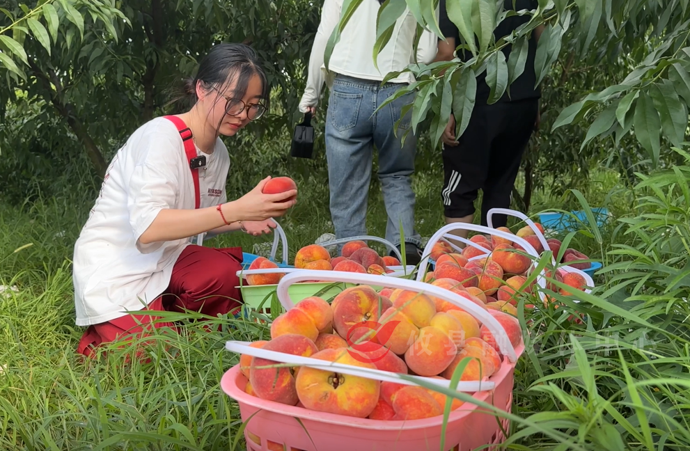 游客刘女士:“去年我的朋友给我寄了一箱过来,我吃完之后觉得口感还不错,今年特地从县城赶来采摘桃子,待会儿还要带几箱回去给家里的亲戚朋友尝尝。”