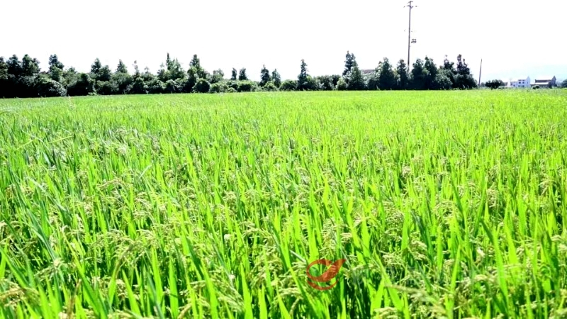 盛夏的稻田里,早稻的穗子随风摇曳。在金湘米业高车头村的种植基地里,金黄色的光辉与稻田的翠绿交织成画卷。
