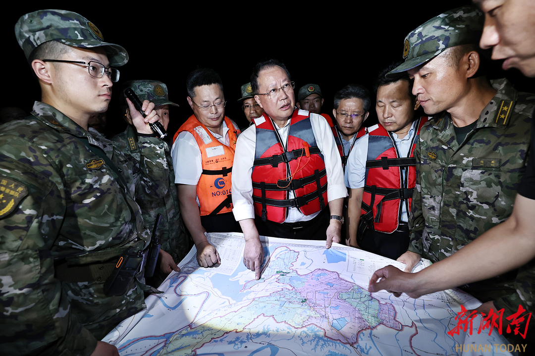 毛伟明一行连夜赶赴华容县团洲垸,现场查看水情险情,研究部署抢险救援工作。他强调,大家务必提高政治站位,全力以赴、严防死守,确保人民生命财产安全。要果断转移危险区域群众。加强对团洲垸的人员巡查工作,防止有人滞留;加快疏散撤离团洲垸安全区群众,确保不漏一人、万无一失;做好钱粮湖垸尤其是钱南垸的人员撤离预案,一旦发生险情,迅速组织撤离。要坚决守住间堤防线。派出干部分段把守、专人负责,确保把责任落在实处,重点做好隔水间堤薄弱堤段、穿堤建筑物等薄弱环节盯防和加固,不放过一个漏洞、不留下一个死角,全力以赴确保第二道防线安全。密切监测水速变化,科学制定封堵方案和团洲垸排涝方案,一旦条件允许就开展实施。要做好现场警戒保障。抓紧设立警戒区域,迅速搭建救援平台,加快石料等抢险物资调度运输,确保现场抢险通道高效畅通。要完善现场应急组织体系。加快构建上下贯通、各方联动的组织体系,调度各方力量开展抢险救援,做到有力、有序、有效。