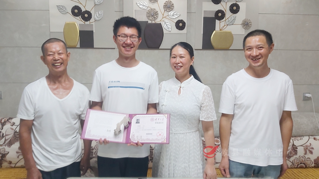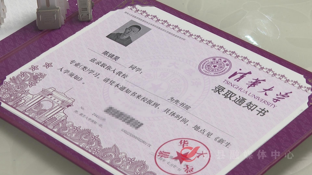 7月27日下午3点半,邮政工作人员来到了紫金名门小区送达一封来自清华大学的录取通知书。门打开后,满面笑容的陈镇昊和爸爸妈妈爷爷早已迎了过来。检验身份、上传信息后,这封来自清华大学的录取通知书正式投递完毕。