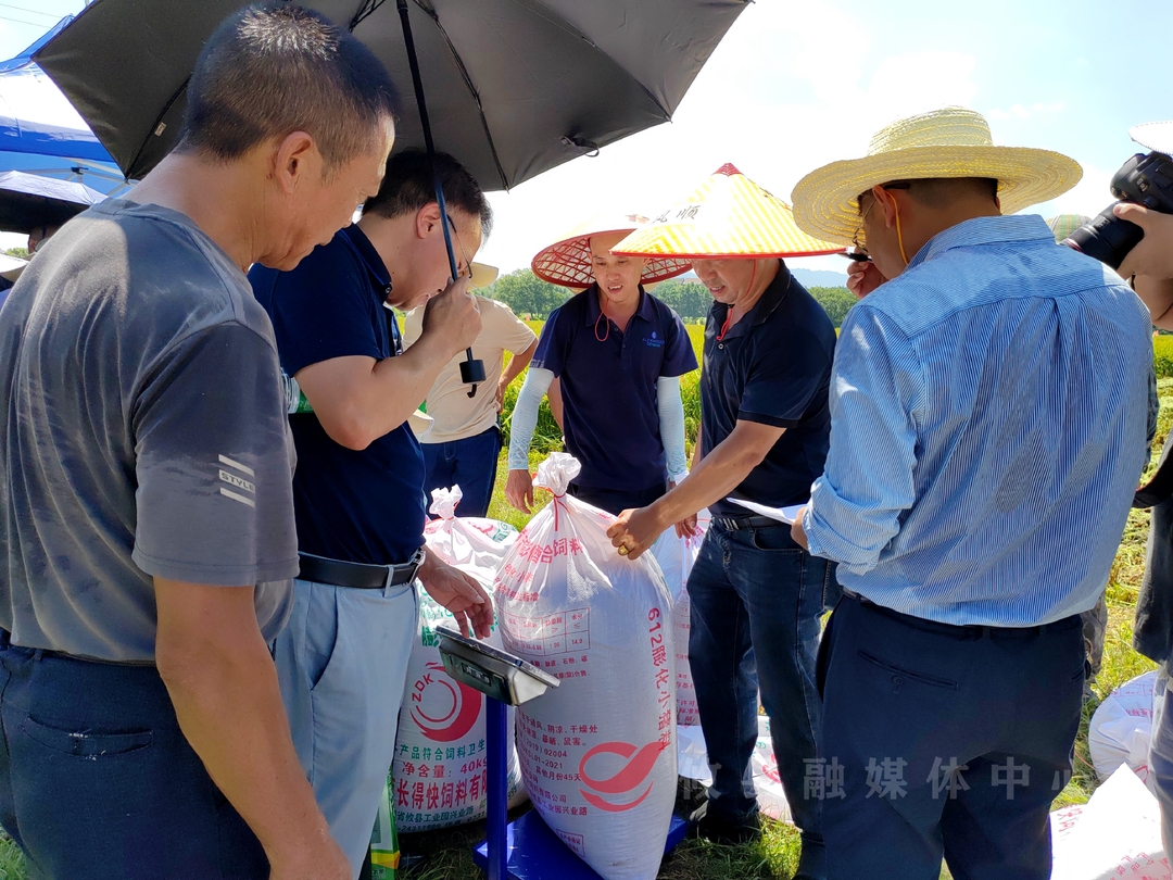 省测产专家组组长雷东阳:“属于高产优质类型,达到了超级稻的标准。在我们百亩连片示范片有这样的效果,可以说是达到了非常高的产量。”