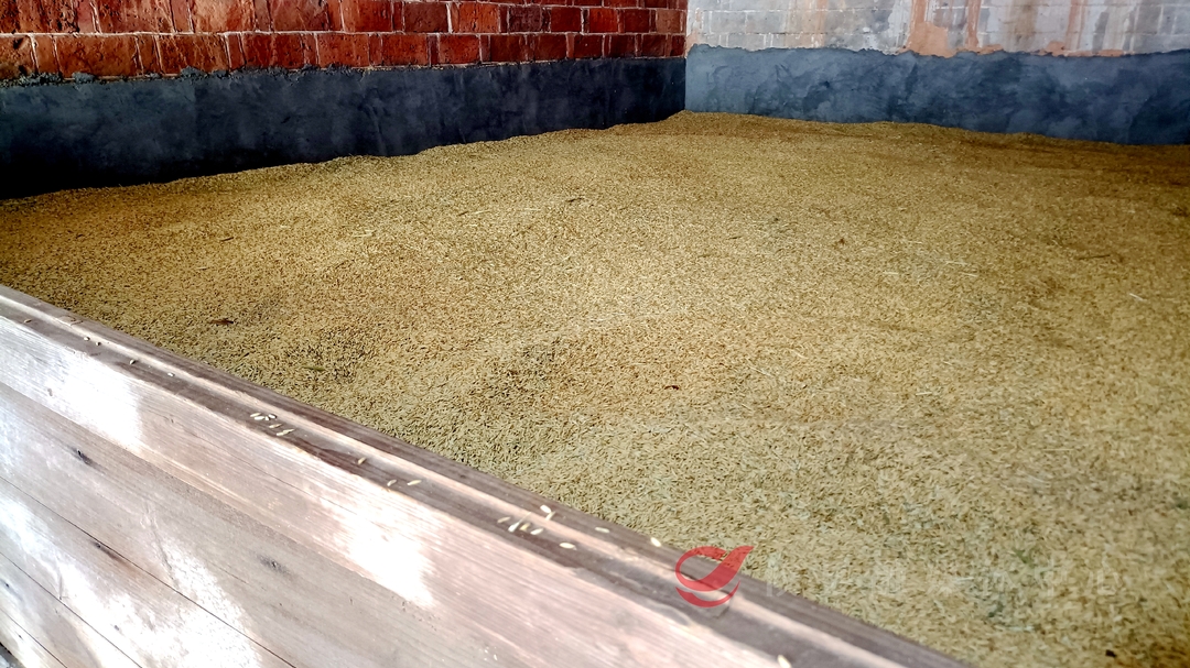 贺秋潭今年水稻制种增加到300余亩,现已经收割了十几亩,黄澄澄的稻谷堆积在自己的仓库里正进行“烘干作业”。