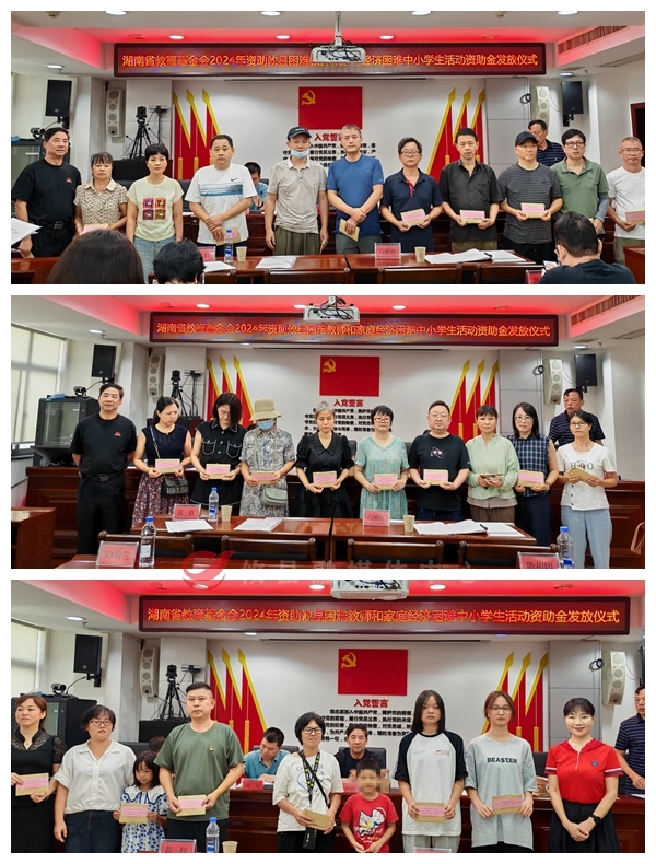 8月6日,2024年攸县资助困难教师和家庭经济困难中小学生活动资助金发放仪式在攸县教育局举行。