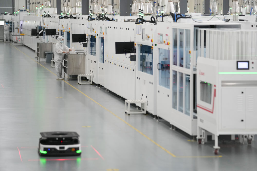 2024年6月12日拍摄的三一硅能株洲5GW光伏制造基地生产车间。