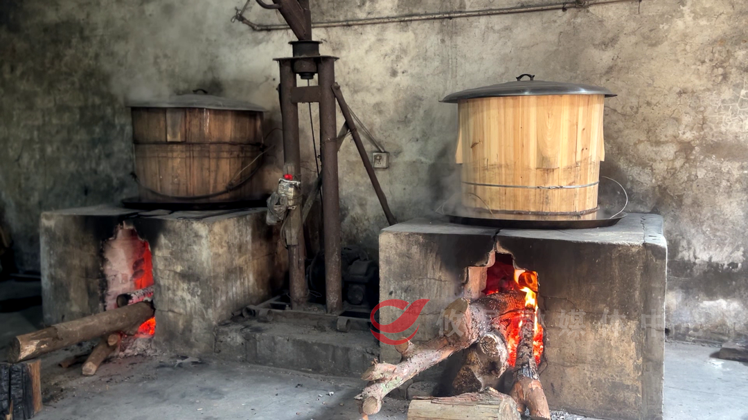 浸泡后的糯米在蒸熟的这个环节钟明波也特别讲究, 用柴火、土灶和‌木甑来蒸糯米。