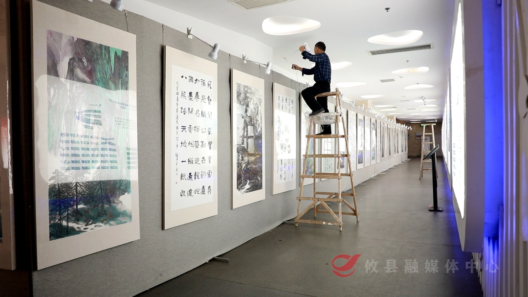 11月13日,翰墨丹青故乡行·中国当代著名书画家唐湘子书画作品巡展攸县站布展正有序进行中。