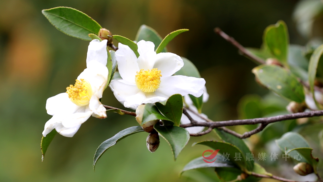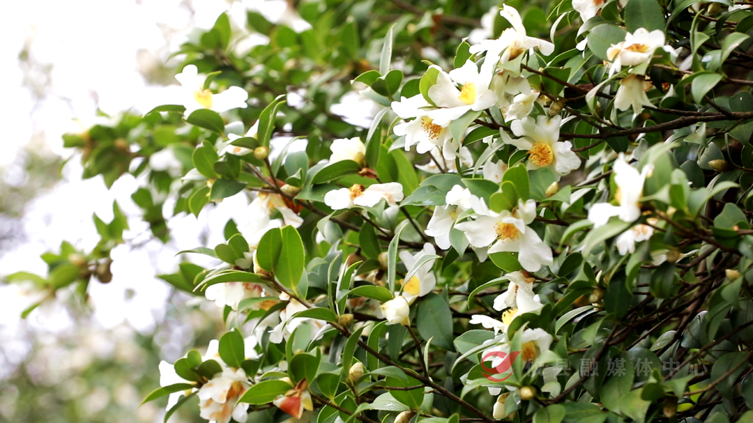 油茶花,又称山茶花或茶花,每年11月初开花,花期为期两个月,目前是油茶花的最佳观赏期。油茶花不仅美丽,而且富有文化内涵和象征意义,被许多诗人用来表达各种情感和思想,使油茶花成为了一种具有深刻寓意的文化符号。油茶花凋谢后,花蒂将慢慢长成油茶果,民间也有“先年花儿多,来年油满锅”之说。