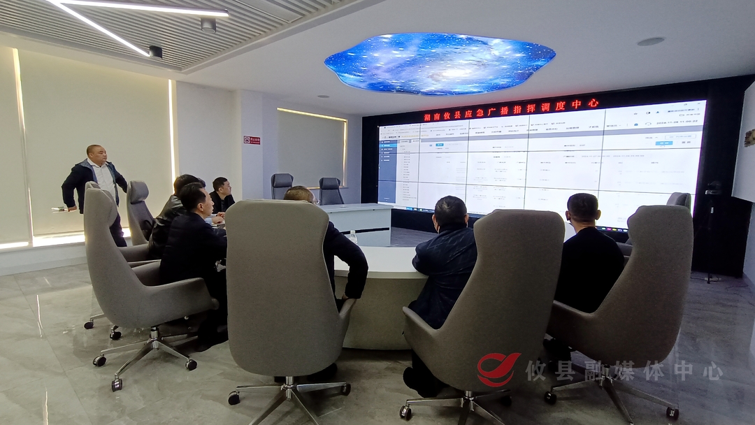 评估组随后来到位于攸县融媒体中心的县应急广播指挥中心,观看了应急广播可视化大屏演示,检查了相关台账资料,详细了解攸县应急广播项目建设和运用情况。