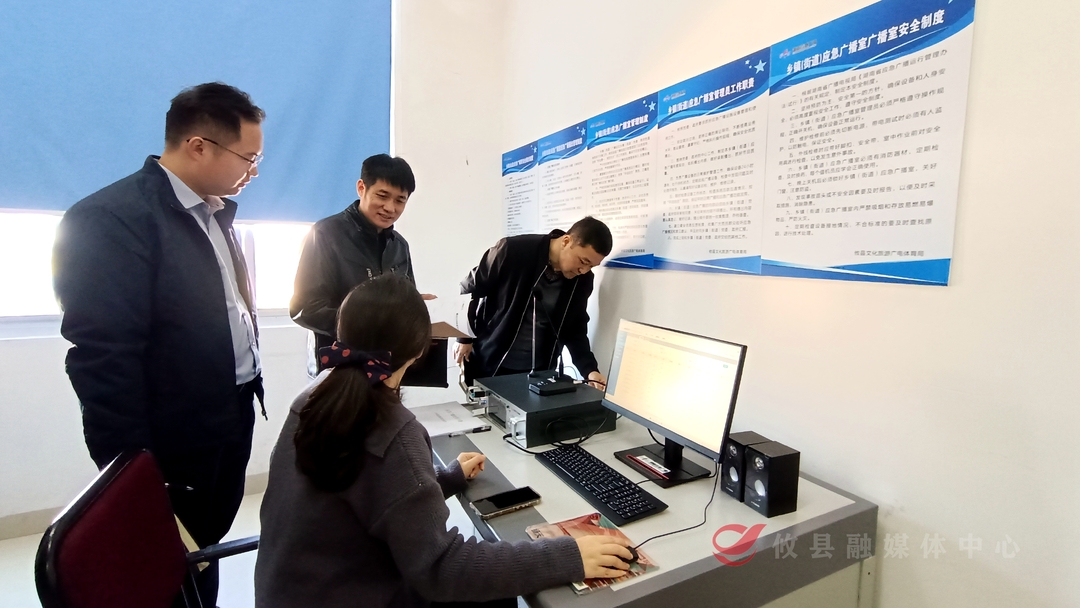 11月28日,省广电局网络中心副主任肖提高一行来攸验收应急广播项目建设工作。