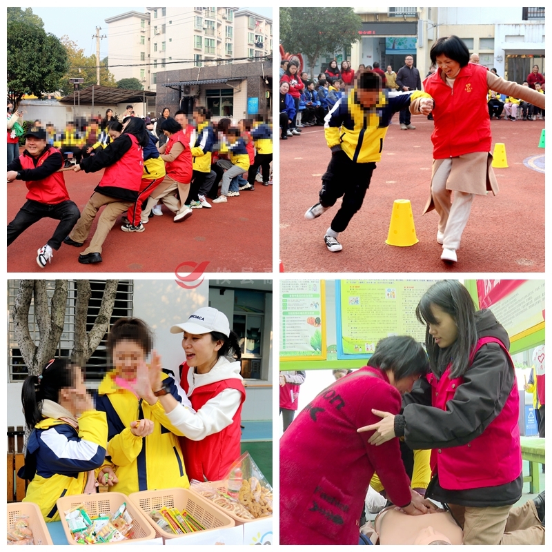 活动在热闹的拔河和绕桩跑等游戏中拉开帷幕,游戏中孩子们和志愿者手拉手,通力合作,共同完成一个又一个项目,玩得不亦乐乎。游戏结束后,志愿者还为孩子们布置了“小集市”,孩子们通过相应的兑换币在“小集市”购买自己心仪的小零食,也进一步锻炼了孩子们的自理能力。同时,由于学校孩子的特殊性,活动现场还设置了“第一目击者”救护现场,县红十字会及县人民医院的志愿者们,为参加活动的家长授教心肺复苏、海姆立克急救等相关急救知识。