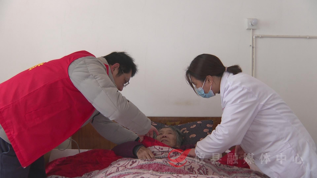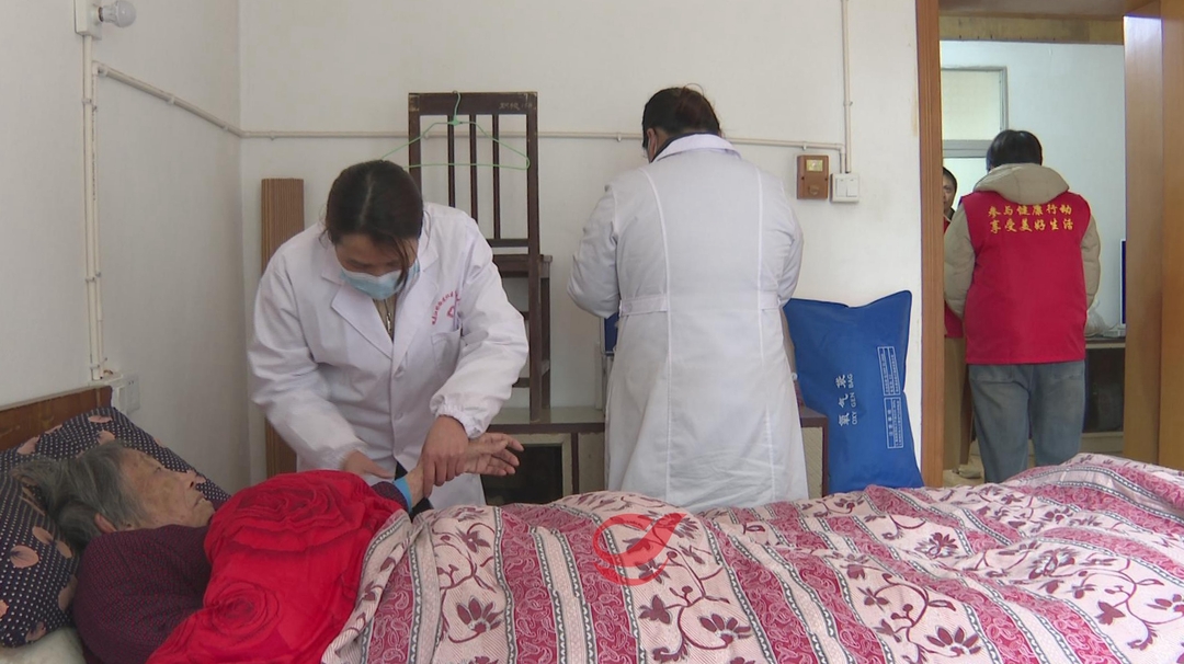 在社区居民章奶奶家里,江桥街道社区卫生服务中心的家庭医生团队的医生正询问章奶奶今天的情况。原来,82岁的章奶奶去年突然中风,一直瘫痪在床,整个下身无法动弹,日常生活都靠女儿照顾,前几日因吃不下饭,便打电话给家庭医生进行上门诊疗服务。