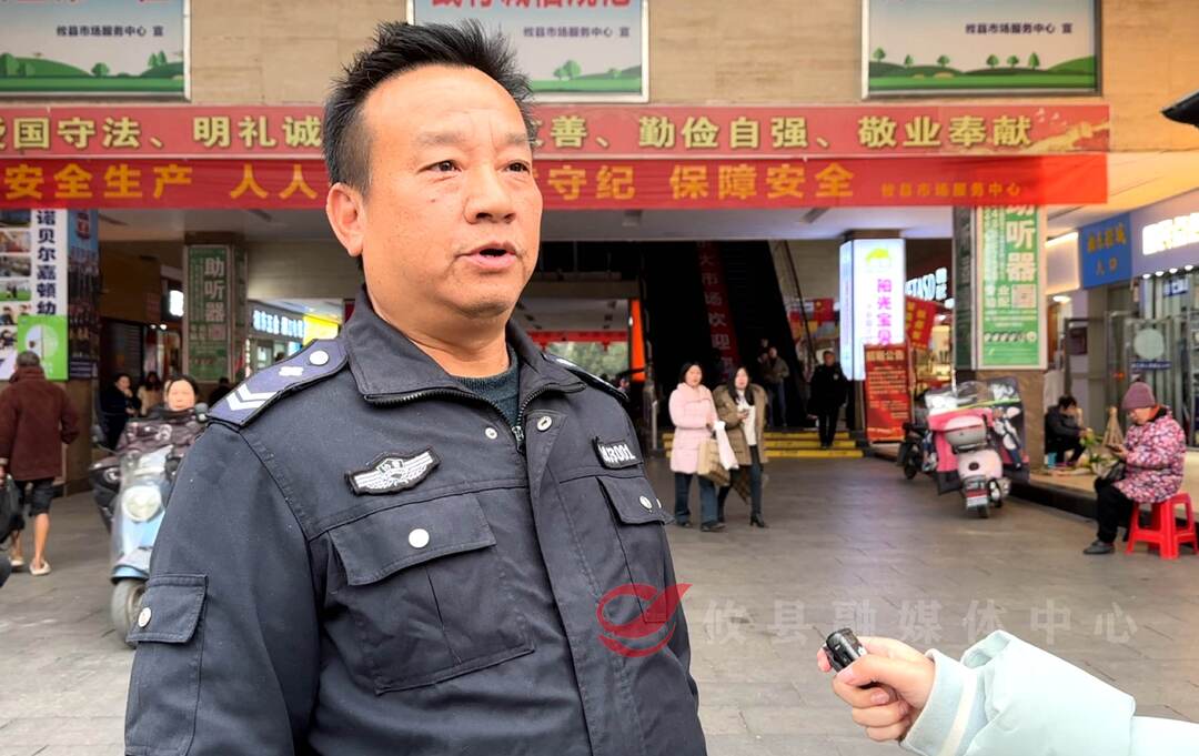 大市场保安队队长尹国庆:“2025年,希望我们的工作更上一层楼,跟商户的关系更加融洽,大市场的生意越来越红火。”