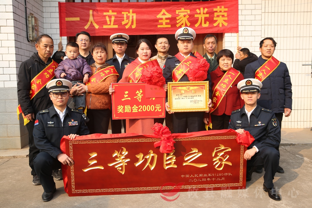 1月15日,县人武部联合中国人民解放军某部、县退役军人事务局和江桥街道等组成送喜报小组,将三等功喜报送到江桥街道杨木港村现役军人谭凯家中,让军人军属共享这份荣耀和喜悦。