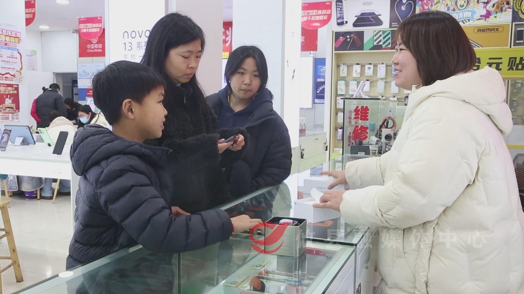 春节前夕,手机、平板、智能手表等数码产品的国补政策全面落地,主要针对单件销售价格不超过6000元的手机、平板、智能手表等数码产品,按产品销售价格的15%给予补贴,每件最高不超过500元。趁着春节期间,许多消费者走进手机店,了解新政策,选购新产品。在攸县新城路一家手机门店里,大多数数码产品都挂上了参与国家补贴活动的提示醒目,让不少消费者颇为心动。