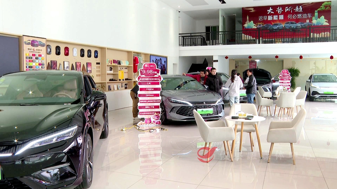 除了3C数码产品,记者在采访还注意到,以往春节前后,是汽车市场销售的淡季,但得益于新一轮以旧换新政策的加力扩围,今年新春的车市,呈现出热潮涌动的景象。在攸县比亚迪汽车王朝店4S店,现场展示着多款新能源车型。车主林先生原来拥有一辆油车,今年了解到新能源车有优惠,更加坚定了换车的念头。他表示,家里的车空间有点老旧,想换一辆新能源汽车。