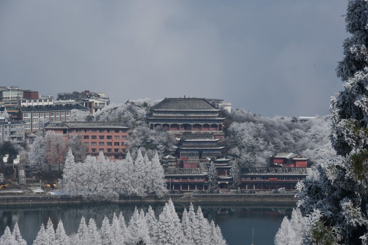 冬季的九宫山,银装素裹,宛如雪国。漫天飞舞的雪花覆盖了山峦,银装素裹,分外妖娆。