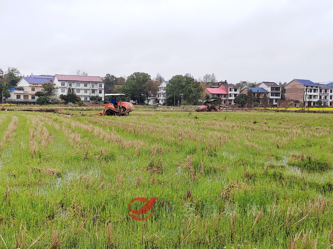 在新市镇土楼村的农田里,合作社的旋耕机正在忙碌地穿梭,所到之处,大片土地被翻耕平整,为即将到来的机插秧工作做好充分准备。