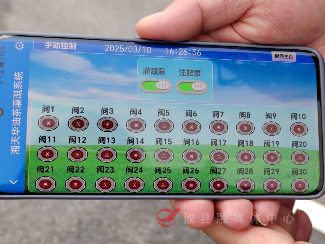 湖南天华油茶科技股份有限公司常务副总陶建军:“我们的水肥一体化系统是采用全方位智能化,包括土壤缺水,能够感应通知到手机上,无论你是出差在外面还是在哪里,都能知道情况怎么样了,油茶林的干旱程度到什么样了,肥料缺失到什么样的,用手机一操作,我们的喷灌系统就会立马启动。”