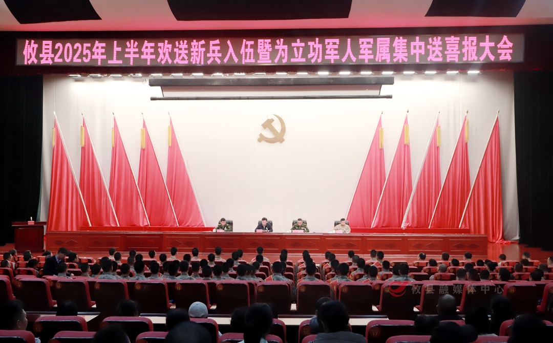 3月14日,县人武部在会议中心举行2025年上半年欢送新兵入伍暨为立功军属集中送喜报大会,热烈欢送即将奔赴军营的新兵,并以榜样的力量激烈新兵们积极投身国防军队事业,为强军兴军贡献自己的力量。