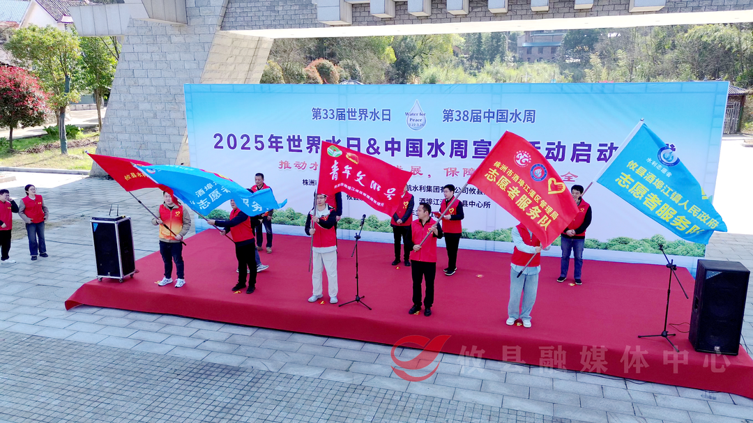 启动仪式上,5支志愿者队伍依次登场,每支队伍以响亮的口号展现了守护酒埠江水库的决心。随后,株洲市酒埠江灌区管理局负责人为各队授旗,现场掌声雷动。