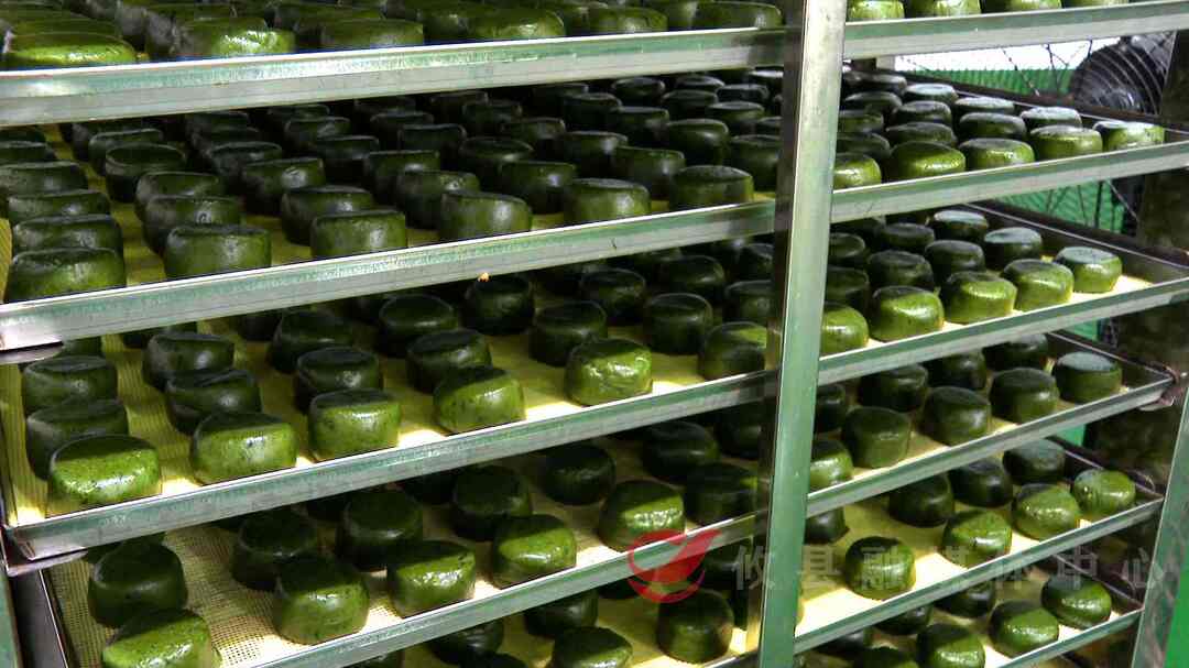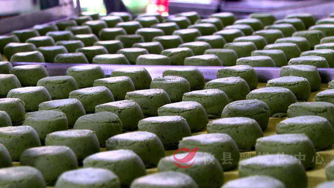 15分钟后,散发着艾草独特清香翠绿的艾叶斋便新鲜出炉了,一个个圆滚滚的艾叶斋将穿上新“衣服”发往全国各地。