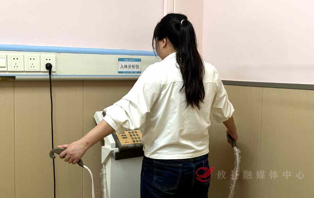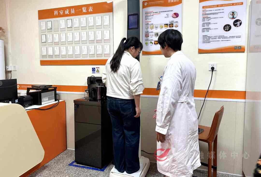 4月10日上午,护士正在为前来就诊的患者测量身高体重及BMI指数。患者表示,由于严重肥胖,她的身体开始出现了诸多不适,特意前来医院寻求帮助。