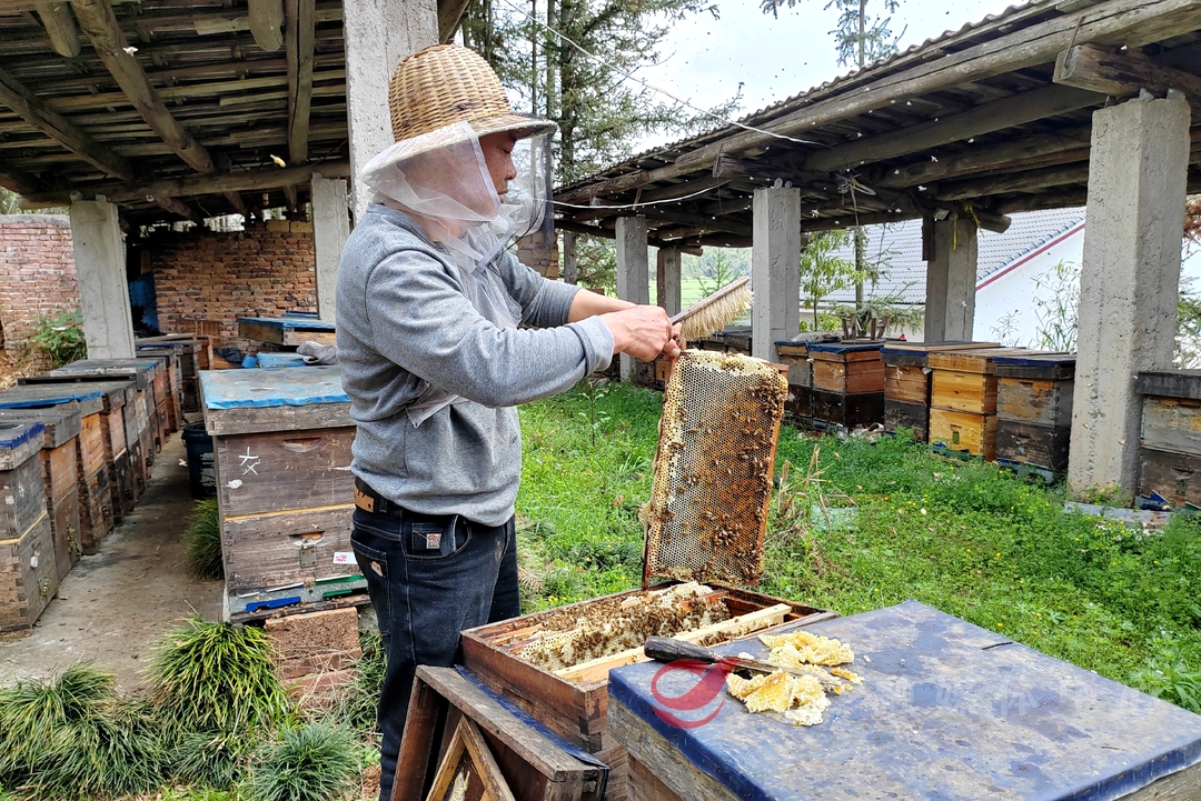 黄丰桥镇墙背村养蜂人陈爱雀:“有产量没销路。我们圈子小,生活生产的地方都是在山沟里。即使养蜂走出去,也是到大山里面。收购商送往厂里,每一次收到的蜂糖,要厂里的化验结果合格,钱才会打到蜂农的卡里,所以我们的糖绝对不会有假。”