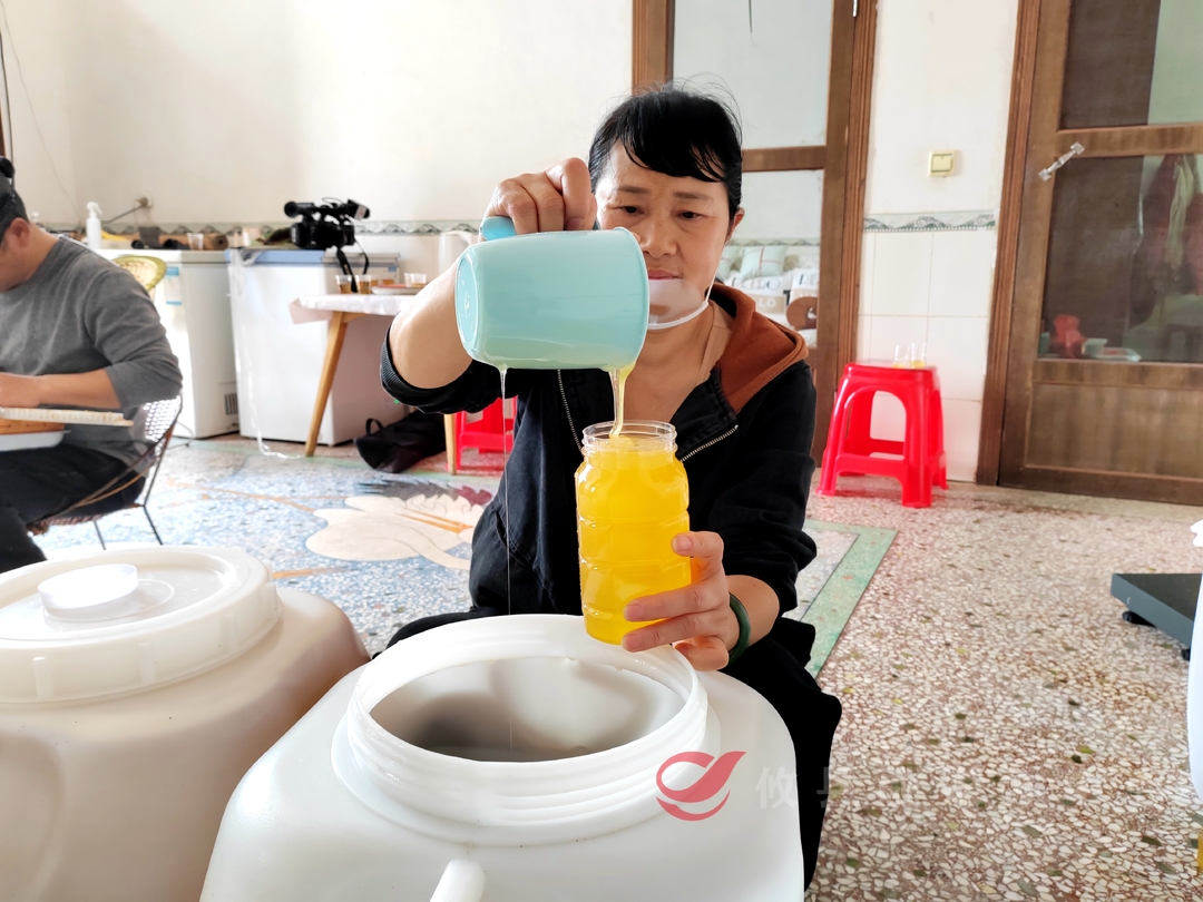 陈爱雀夫妇饲养了130多箱蜜蜂,除了生产蜂蜜,还生产蜂王浆。蜂王浆作为哺育蜂王幼虫的食物,采制过程非常考验技艺。