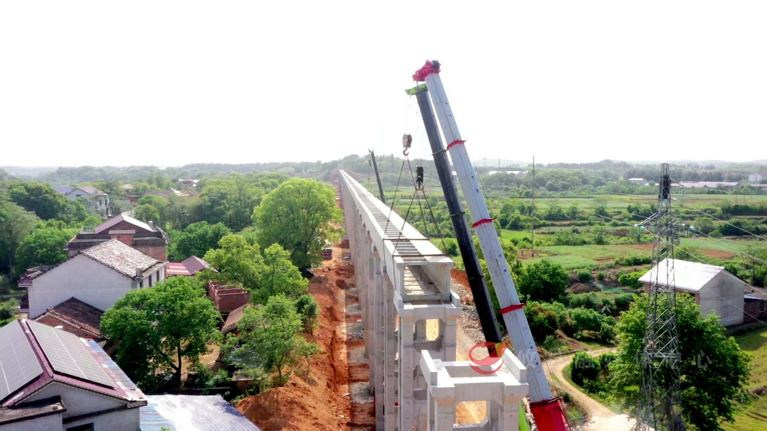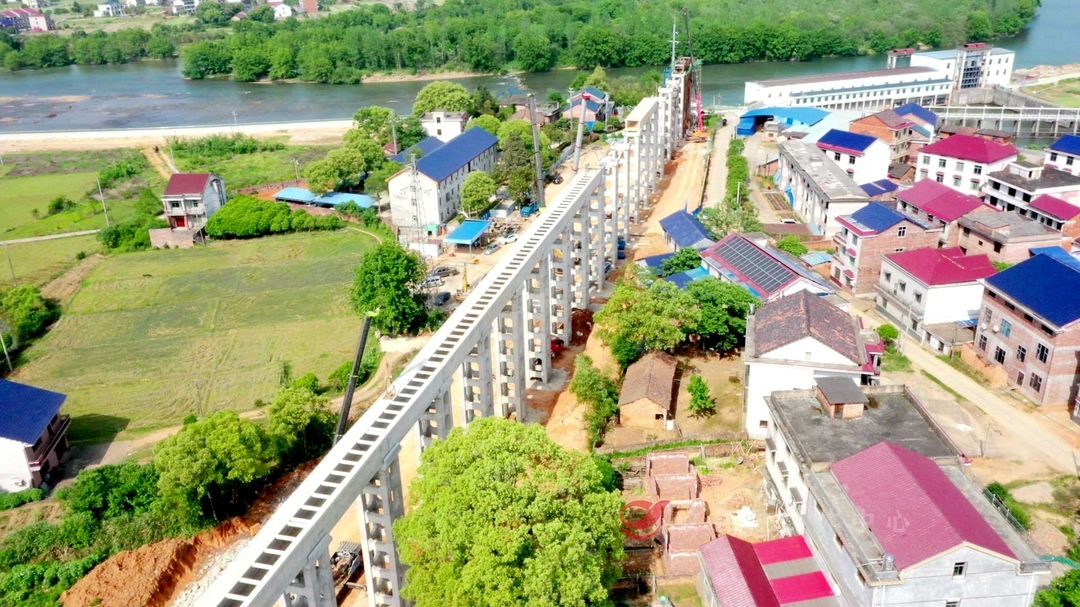 湖南建投水利水电有限公司攸县苏州坝续建配套与节水改造工程项目经理部项目经理赵勇:“鹅形渡槽,我们现在还剩10块槽身没有吊装,包括那里前面还有一块现浇段,就是这个月底,我们就这部分的工程任务全部完成,保证5月1号要供水灌溉。”
