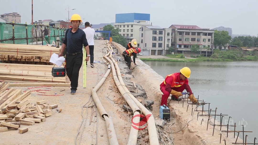 洣水一桥项目现场管理人员于欣:“现在我们进行的是桥面上的施工,我们准备把桥面两侧的护栏重新拆除、人行道破除。”