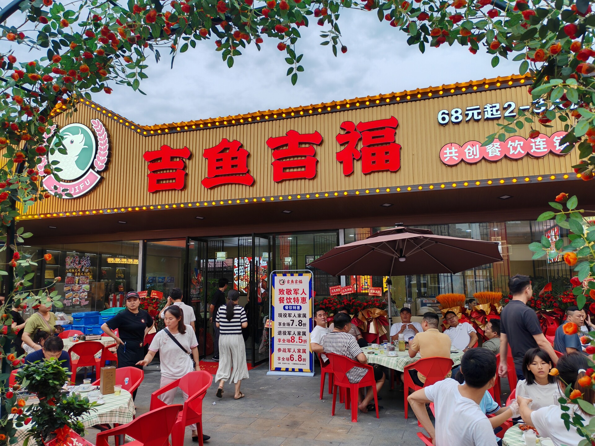 据悉,刘育平在部队服役期间,军事素质过硬,个人荣立三等功。2010年因伤退役后,他秉持“退役不褪色”的信念踏入快餐餐饮行业,拖着残疾的右腿在广东东莞从普通店员做起,深耕供应链管理、门店运营等领域,不断积累创业经验,慢慢打造出自己餐饮品牌“刘记杀猪粉”,连锁店开到68家,为数百名退役军人提供创业就业机会。这十余年间,他身处异乡,却心系家乡,最终在去年底选择回乡再创业,成立“吉鱼吉福”新品牌,寓意以特色主菜吉祥烤鱼,为家乡发展吉福吉财,坚持以“平价美食+拥军情怀”定位,瞄准全国县级餐饮领域开创一片新天地。