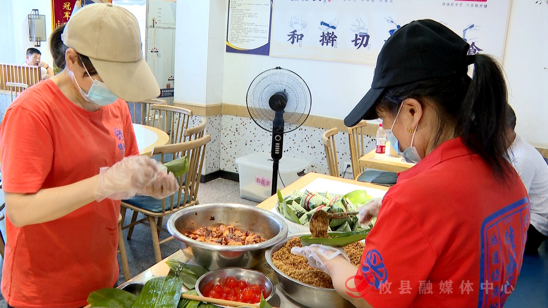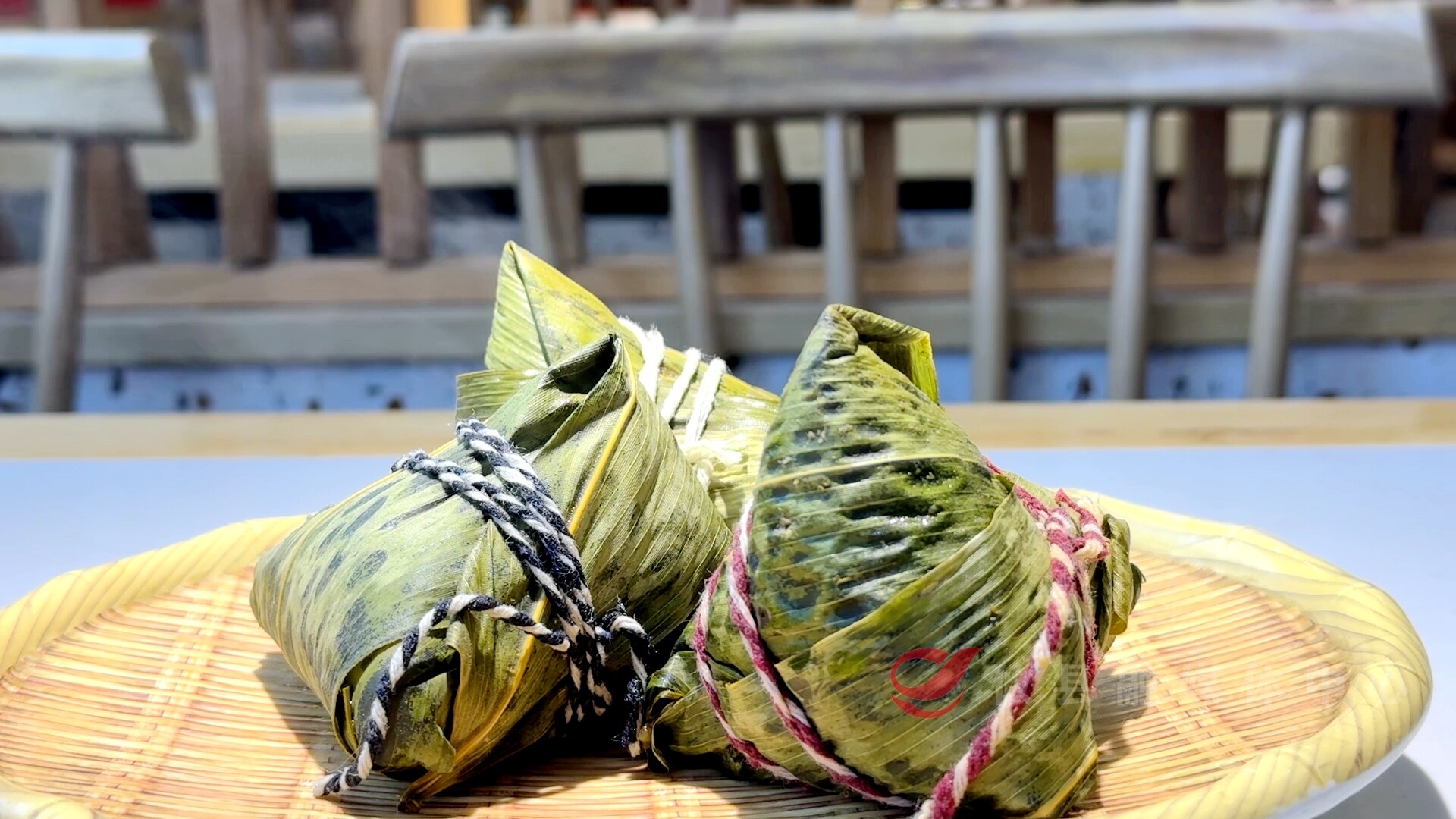 佳裕兴工作人员文香兰:“包粽子的时候要把这个粽子包紧,把那个糯米压实,包出来的粽子才好看又好吃。糯米一般有两种,一种是长糯米一种是圆糯米,长糯米口感比较清爽,圆糯米口感比较绵密,柔软。”