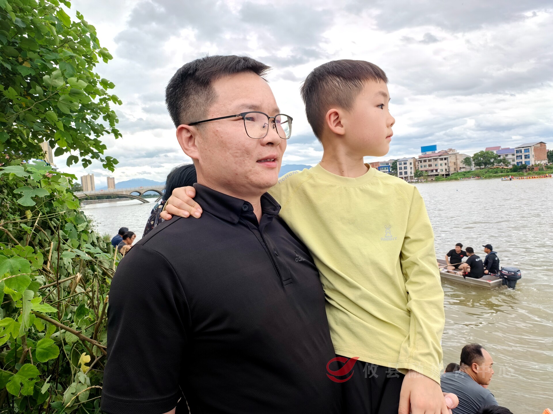 市民夏女土:“今天是端午节,我们一起到县城看一下划龙舟,感受划龙舟欢乐的氛围,也让小孩子们学习一下团结、拼搏、奋斗的精神。”