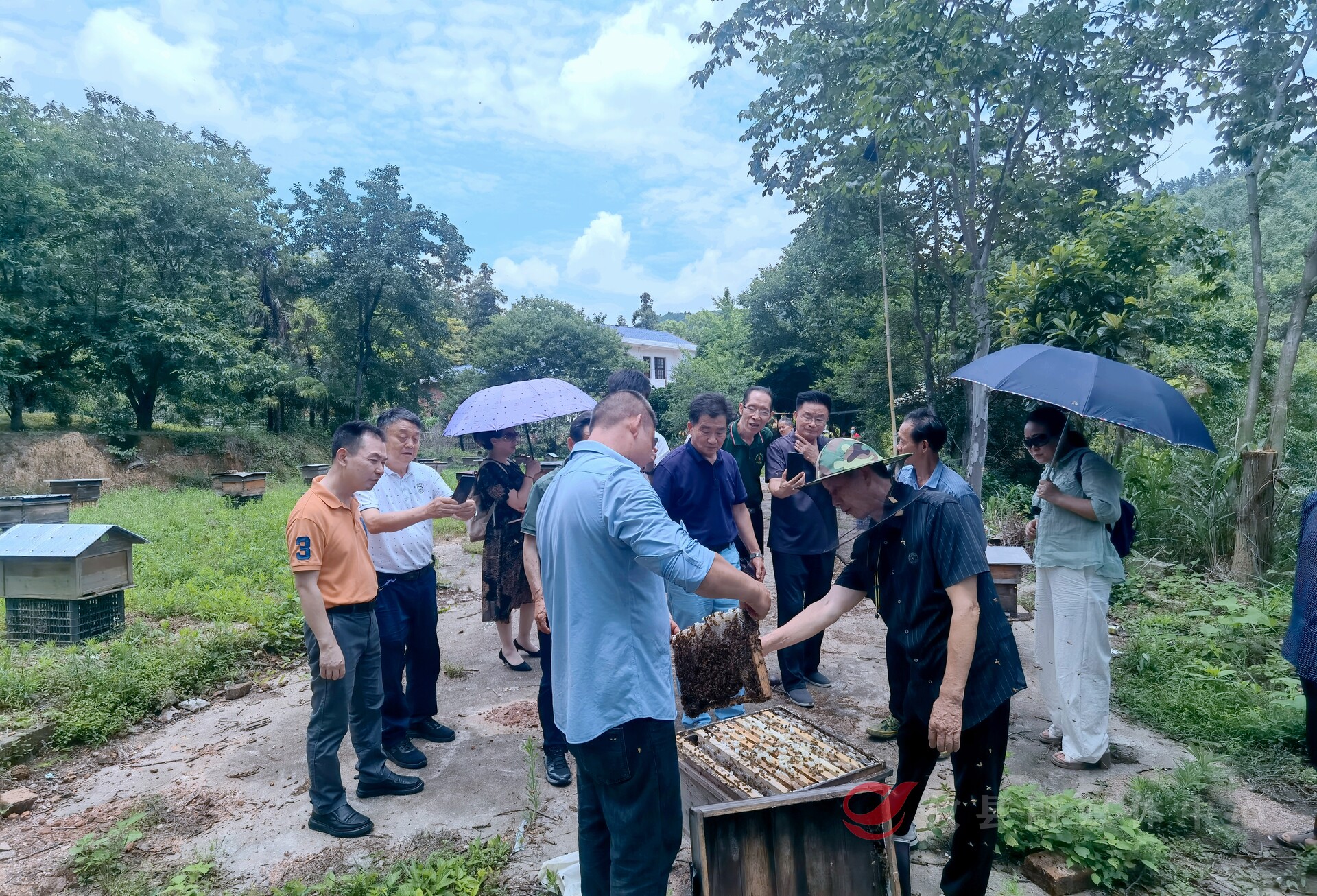 在荫泉村养蜂基地,侨联成员们与养蜂户们深入交流,了解蜂箱管理、蜂蜜产量、销售渠道等各个环节的实际状况。围绕如何依托侨界资源优势,进一步推动荫泉村特色产业发展、拓宽蜂蜜销路、优化乡村环境等话题热烈讨论、群策群力。