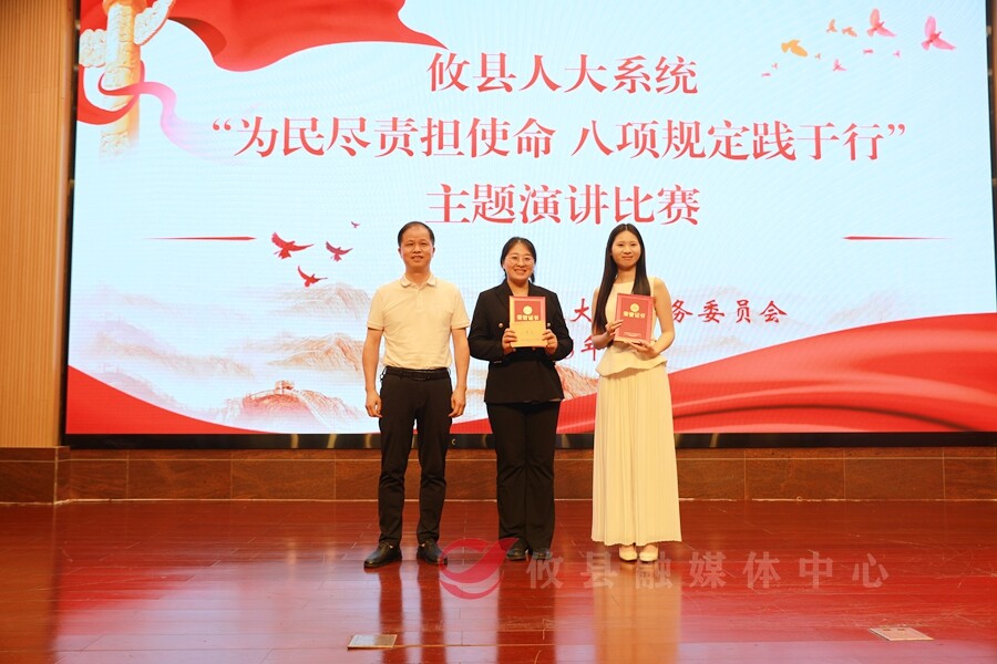 7月8日,攸县人大系统 “为民尽责担使命•八项规定践于行”主题演讲比赛决赛圆满落幕,来自黄丰桥镇人大主席团、渌田镇人大主席团的参赛选手荣获演讲比赛一等奖,县人大常委会党组书记、主任冯杰出席活动并为获奖选手颁奖。