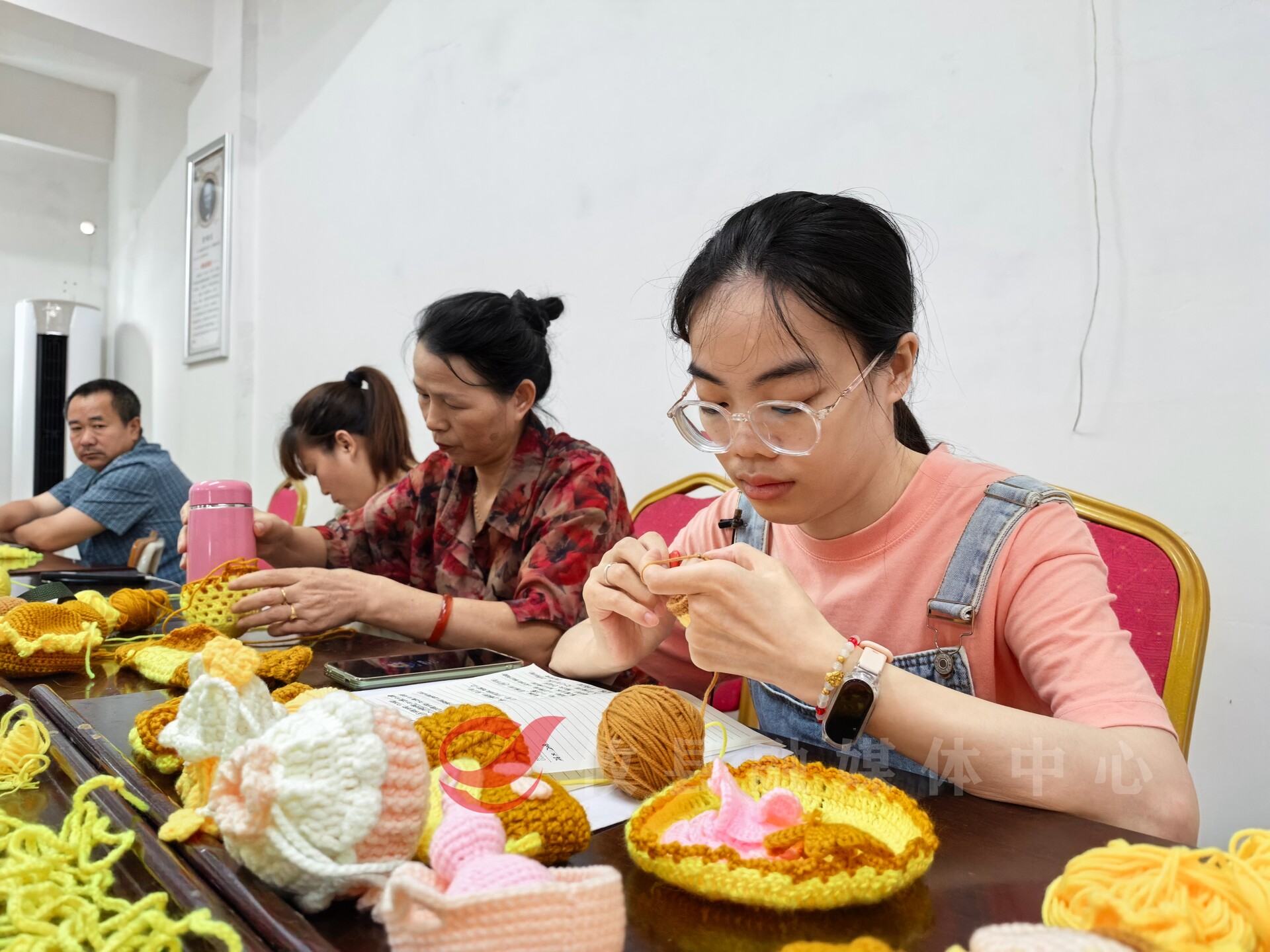 “美丽工坊”项目教师秦女士:“他们的动手能力还是蛮强的,大部分都可以钩成品,我们的目的就是帮助这里的姐妹能够实现家门口就业,合格的我们就拿回去回收。”