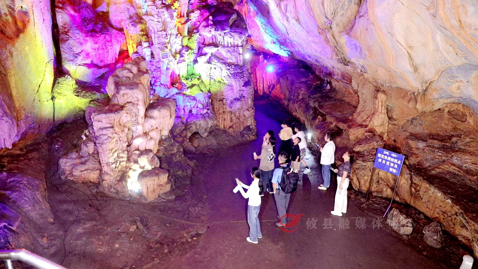 走进白龙洞,瞬间凉意扑面而来。洞内钟乳石林立,石笋、石幔、石花在彩灯映照下如梦如幻,配合洞内潺潺的地下暗河流水声,为游客打造了一场视觉与体感的双重盛宴。