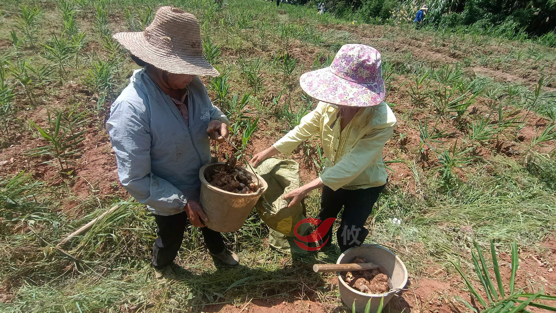 “立夏种姜,夏至取娘”。眼下正是生姜田间除草、翻土、施肥,取出小黄姜的“姜娘”时期,十几位村民分工合作,正在田地里忙碌着。