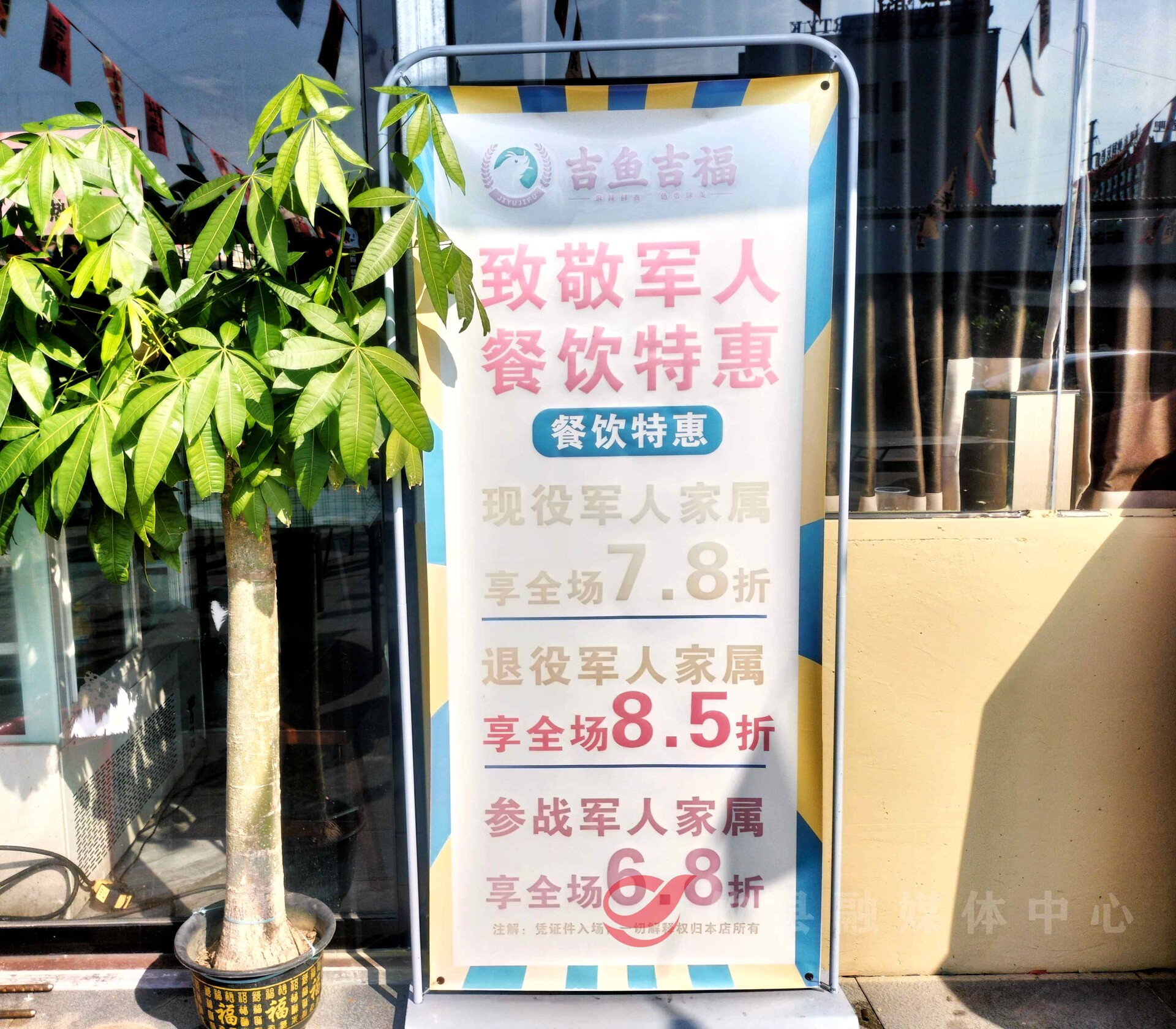 走进湘运汽车站后面的一家特色烤鱼店,一股浓厚的拥军氛围扑面而来。店面不算很大,但门口立着的军人、军属用餐优惠的牌子格外醒目。这个店的老板,正是退役军人刘育平。