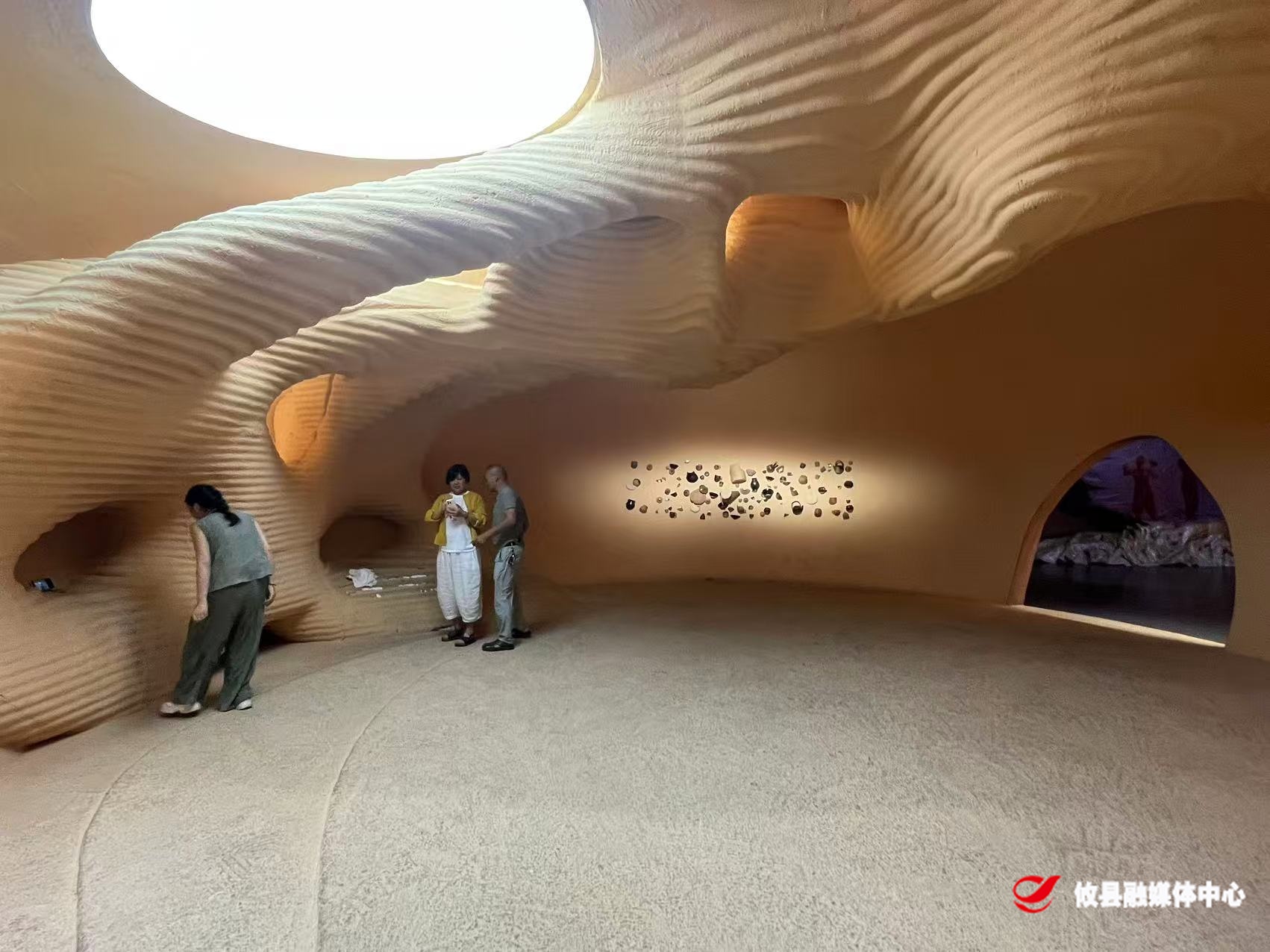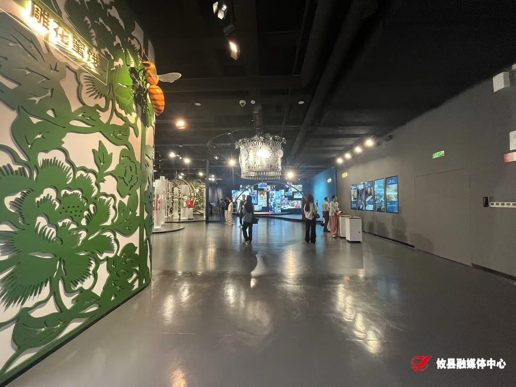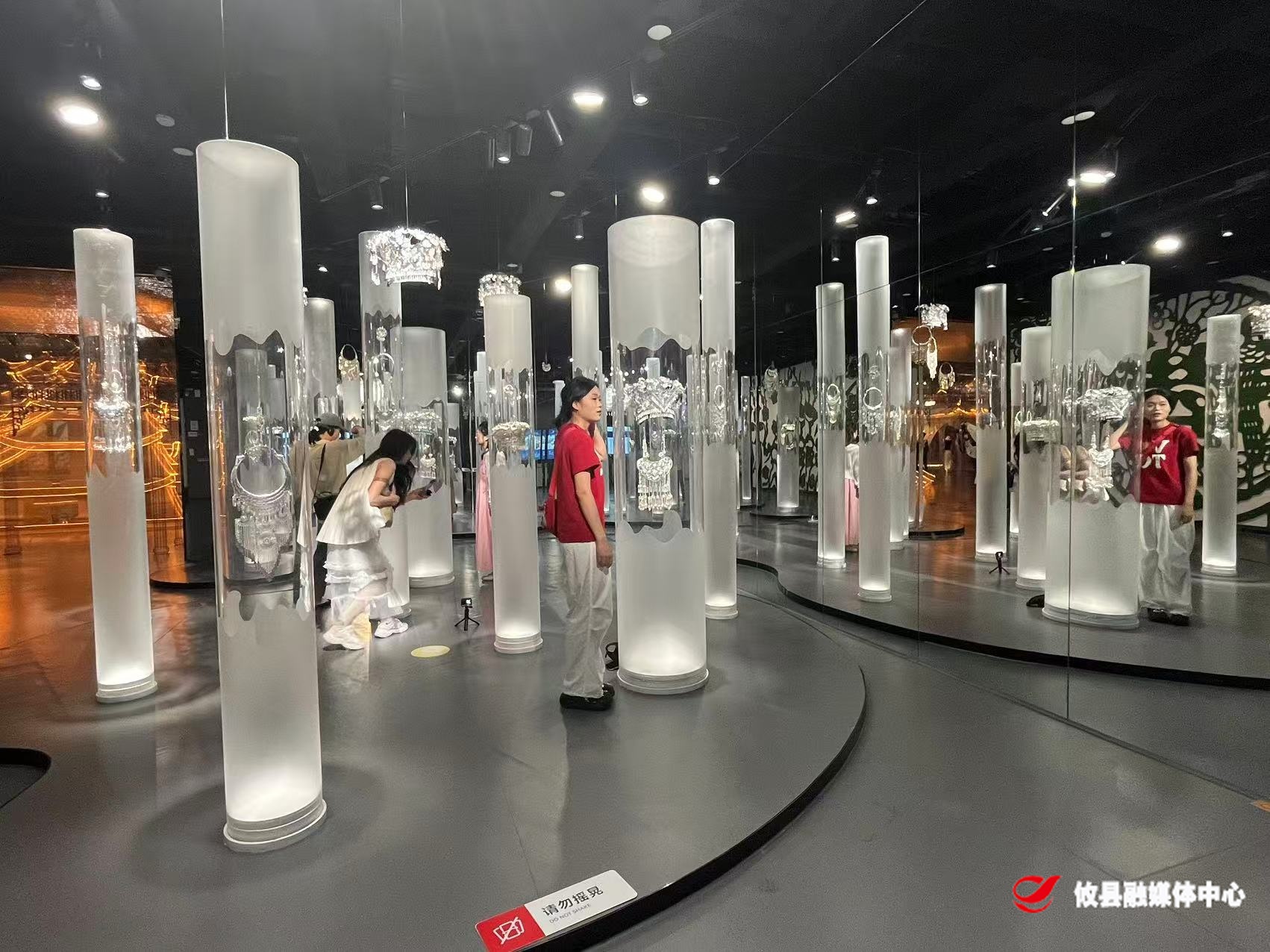 而在乐器舞蹈区,琵琶、芦笙、瑶鼓等传统乐器悬挂在红色造型丝弦笼罩的空间里。只要轻拨丝弦,即可触发音乐与光影联动的视觉盛宴。