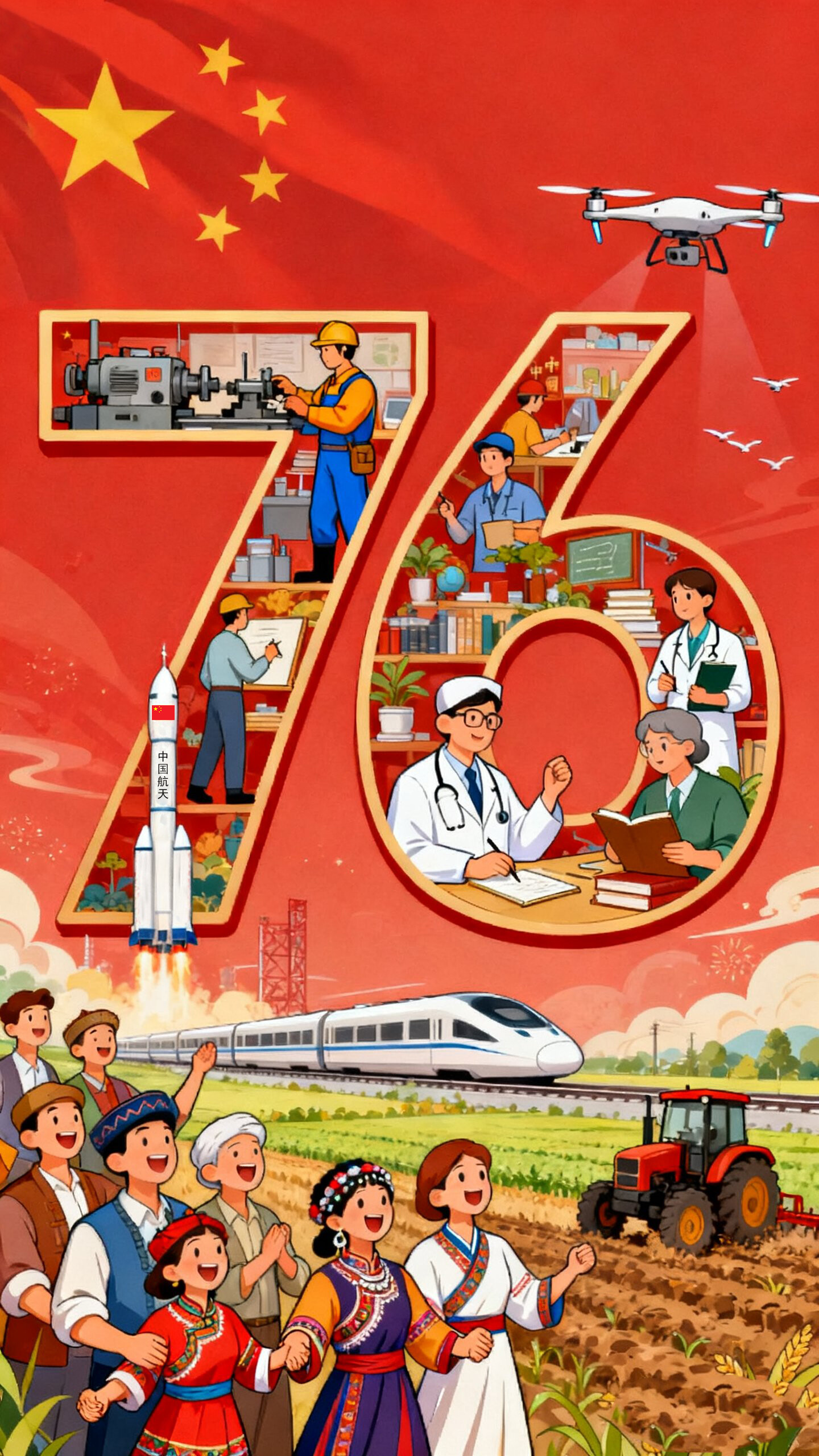 76载风雨兼程,76载砥砺奋进。从“两弹一星”的惊天突破,到杂交水稻的济世良方;从青藏铁路的“天路”贯通,到港珠澳大桥的“海上长城”屹立;从神舟飞船遨游太空,到嫦娥探月、祝融探火实现千年梦想……中国创造了经济快速发展和社会长期稳定两大奇迹。