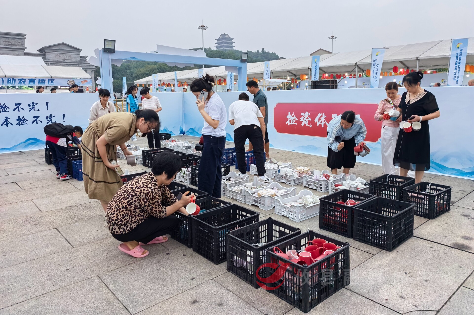 此外,“捡瓷器”、农产品展销活动也同样受到了市民朋友的青睐。在“捡瓷器”区域的展位上,杯子、瓷碗等各种瓷器一字排开,不少市民闻讯赶来,有的甚至是全家出动,大家仔细挑选,满载而归。