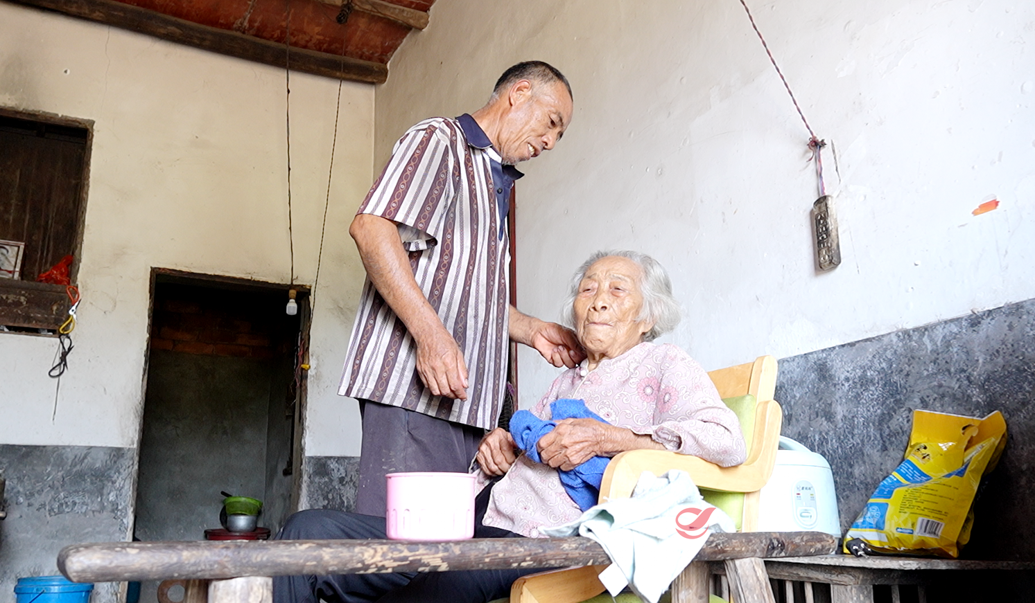 轮椅上96岁的老母亲虽不能言语,但每当儿子俯身擦拭时,浑浊的眼中总会泛起泪光。常人眼中琐碎的照护工作,对颜基文而言却是一场场需要反复练习的“战役”。因智力障碍,他学一套动作要比别人多花数倍时间,却从未漏过母亲一顿饭、一次翻身。夏天,他每天为母亲擦洗三次,竹席始终清爽;冬天,他把热水袋裹上厚布垫在母亲脚底,自己蜷在床边和衣而眠。邻居们说:“老人卧床多年,身上没长过一块褥疮,这比很多正常儿女都细心!”