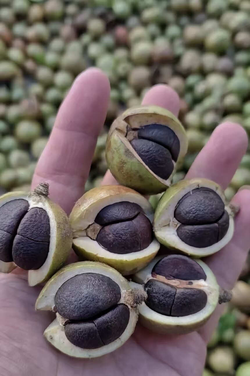 走进杨木港村的山茶籽基地,视线所及是无边的绿与金。山茶树并不高大,却以顽强的生命力扎根于红壤丘陵,树冠如伞,层层叠叠。寒露后的阳光为茶籽镀上琥珀色的光泽,熟透的果壳微微裂开,露出黝黑的籽仁,空气中弥漫着淡淡的油脂香气。